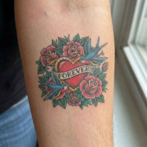 Ewige Romantik: Old School Herz & Rosen "Forever" Fake Tattoo