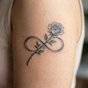 Ewige Romantik: Filigrane Rose mit Unendlichkeitsschleife & Herz Fake Tattoo