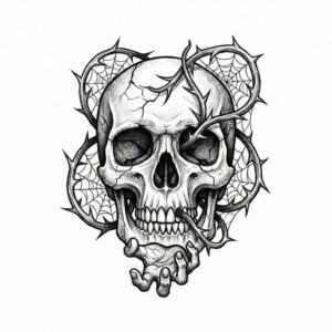 Morbide Eleganz: Dornen-Schädel & Spinnennetz Fake Tattoo