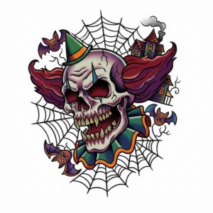 Jahrmarkt des Grauens: Der diabolische Clown-Schädel Fake Tattoo